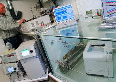 We regularly hear reports that laser printers release pathogenic toner dust into the ambient air. How much of it can we believe? What kind of particles do the printers really emit, and in what quantities? Researchers at the Fraunhofer Wilhelm Klauditz Institute WKI in Braunschweig are investigating this question in collaboration with colleagues from Queensland University of Technology QUT in Brisbane, Australia. The results are surprising: Contrary to numerous reports, laser printers release hardly any particles of toner into the air. "But what some printers do emit are ultra-fine particles made of volatile organic-chemical substances," says WKI head of department Prof. Dr. Tunga Salthammer. "One essential property of these ultra-fine particles is their volatility, which indicates that we are not looking at toner dust." So where do these ultra-fine particles come from? And how can their emergence be explained? To discover the answer, the scientists have developed a process that enables them to determine and compare the quantity, size and chemical composition of the emitted particles. Technical and financial support was provided by the printer and copier manufacturers in the German Association for Information Technology, Telecommunications and New Media (BITKOM). Depending on their dimensions, the printers are housed in a test chamber measuring one or 24 cubic meters. Particle analyzers count the particles and measure their size distribution. To discover the source, the researchers also examined modified printers that "print" without any paper or toner. "The amazing thing is that the ultra-fine particles are still produced even in this case. The cause is the fixing unit – a component that heats up as high as 220°C during the printing process in order to fix the toner particles on the paper," explains WKI scientist Dr. Michael Wensing. The high temperatures cause volatile substances such as paraffins and silicon oils to evaporate, and these accumulate as ulta-fine particles. The scientists from Braunschweig observed similar phenomena – the formation of ultra-fine particles of volatile organic substances when heated – during typical household activities such as cooking, baking, or making toast. Filters are available on the market to reduce these printer emissions. But are they any use? "Our investigations show that the various external filters on offer for printers operate in very different ways. As the ultra-fine particles are not emitted from a specific part of the printer, but also from the paper output, for instance, a filter can only have a limited effect."