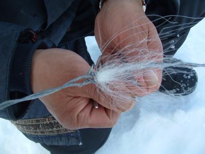 The Queen's researchers, including MSc Biology students Pamela Wong and Christopher Harris, are using a multi-phased approach to create a clearer picture of the polar bear population. First, a number of "hair traps" – fenced enclosures baited with meat – will be set up about 15 kilometres apart over a 600-kilometre area. Bits of hair left behind by the bears as they attempt to reach the meat are sent to Dr. Boag's lab, where the number and sex of the animals are determined using DNA markers. At the same time, samples of bear feces are collected and genetically screened by collaborators at the Laboratory of Wildlife Diseases at the San Diego Zoo for the presence of disease-causing agents that may infect polar bears.