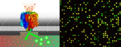 Membrane-associated receptors, channels and transporters are among the most important drug targets for the pharmaceutical industry. The search for new drugs resembles looking for a needle in a haystack. Therefore new analytical techniques are required which facilitate the simultaneous screening of a large library of compounds across a variety of membrane proteins. However, this class of methods is still at the early stages of development. The group of Prof. Dr. Robert Tampé, in collaboration with the Walter Schottky Institute at Technical University Munich, has now presented a novel, automatable lab-on-chip device for high-throughput screening of sensitive membrane proteins. The work is detailed in the journal Nano Letters, where the scientists describe the analysis of membrane proteins on a nano-fabricated chip surface that contains almost 50,000 nanopores. These pores are covered by a freely suspended lipid membrane that incorporates the proteins to be analyzed. Because the lipid membrane is free of organic solvents and the proteins do not touch the solid support, the fragile structure (and therefore function) of the proteins is preserved.