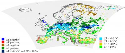 The large leaf area and low aerodynamic resistance of these types of trees lends itself to enhanced evapotranspiration compared to other vegetation, cooling the surrounding air, and leading to cooler surface temperatures. The model indicates that in the northern part of central Europe and Ukraine afforestation results in 0.3-0.5C decrease in temperature and 10-15% more summer rain by 2071-2090.