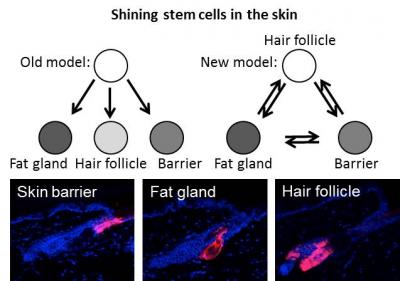 "Until now, the belief was that the skin's stem cells were organized in a strict hierarchy with a primitive stem cell type at the top of the hierarchy, and that this cell gave rise to all other cell types of the skin. However, our results show that there are differentiated levels of stem cells and that it is their close micro-environment that determines whether they make hair follicles, fat- or sweat glands, says Kim Jensen.