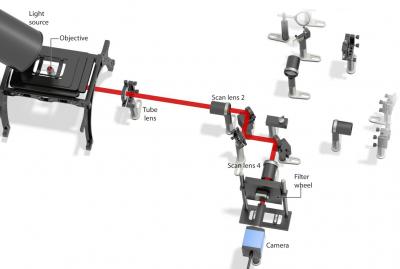 The second microscope, described in a paper published in Nature Biotechnology online on October 13, builds on selective plane illumination microscopy (SPIM). Traditional microscopes expose the whole sample to light even though they are only imaging one small section at a time. However, just as the sun can damage skin cells, too much light exposure can damage or even kill biological samples like embryos. SPIM uses a thin beam of light to illuminate only the single plane that is currently being imaged so the biological sample is not damaged by overexposure to light. However, the technology is limited because looking at a 3-D object from only one point of view does not provide a complete representation of the object -- in the same way that viewing a globe from one perspective gives no information about what is on the other side of the world. Traditionally, SPIM microscopes rotate the sample so that they can clearly see all the dimensions, but this severely limits the imaging speed and can increase the damage done to the cells from light exposure because of the many extra images taken at multiple angles. As a result imaging is also slowed down, and the ability to capture much of the fast moving cellular motion is lost.