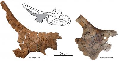 The Alberta specimen confirmed that the fossil from Montana was not a pathological specimen, nor had it somehow been distorted during the process of fossilization," said Dr. Philip Currie, professor and Canada research chair in dinosaur paleobiology at the University of Alberta. "The two fossils -- squamosal bones from the side of the frill -- have all the features you would expect, just presented in a unique shape."