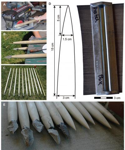 Attaching a stone tip on to a wooden spear shaft was a significant innovation for early modern humans living around 500,000 years ago. However, it was also a costly behavior in terms of time and effort to collect, prepare and assemble the spear. Stone tips break more frequently than wooden spears, requiring more frequent replacement and upkeep, and the fragility of a broken point could necessitate multiple thrusts to an angry animal. So, why did early hunters begin to use stone-tipped spears? To learn if there was a "wounding" advantage between using a wooden spear or a stone-tipped spear, ASU postdoctoral researcher Jayne Wilkins, doctoral student Benjamin Schoville and coauthor Kyle Brown from the University of Cape Town, conducted controlled experiments using tipped and untipped spear replications, a calibrated crossbow and ballistics gelatin. The experiments looked at the size and shape of the "wound," penetration depth and damage done by extraction of the spear. Wilkins and Schoville are affiliated with the Institute of Human Origins, a research center of the ASU College of Liberal Arts and Sciences in the School of Human Evolution and Social Change.