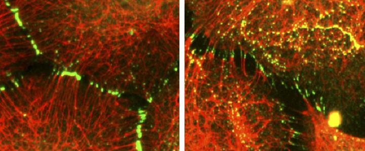 Cells control the adhesion protein desmoplakin by modifying the tail end of the protein, and this process goes awry in some patients with arrhythmogenic cardiomyopathy, according to a study in The Journal of Cell Biology. Desmoplakin is a key component of the adhesive junctions, known as desmosomes, that link cells together in tissues that undergo severe strain, such as the heart and skin. Its role is to anchor parts of the cytoskeleton to sites of cell-to-cell contact. Kathleen Green and colleagues at Northwestern University Feinberg School of Medicine determined how modifying desmoplakin's intracellular tail with phosphate and methyl groups affects the protein's interaction with the cytoskeleton.