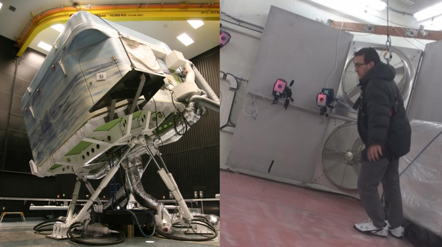 The researchers are testing the material in an innovative, self-contained lab space that can be hoisted in the air and tilted to create sloped floors covered in ice and snow. The incline is increased until volunteers wearing shoes with soles made from the textured rubber start to slip. (The lab is also equipped with a padded wall and a safety harness to prevent any dangerous falls.)